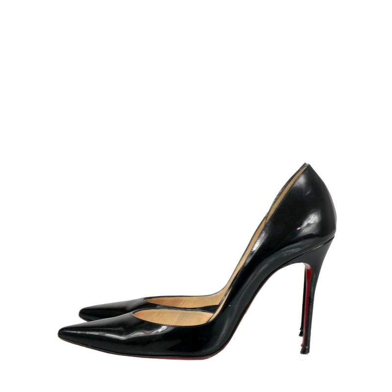 Sapato da marca Christian Louboutin, tamanho 38 sola, aproximadamente 36-37 BR, confeccionado em verniz preto. O sapato conta com salto de 10 cm. O sapato encontra-se em ótimo estado de conservação.
