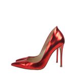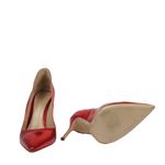 Scarpin da marca Gianvito Rossi, tamanho 39 sola, 37 Brasil, confeccionado em couro metalizado vermelho. O sapato conta com salto de 11 cm e bico fino. Encontra-se em excelente estado de conservação, apenas com leve desgastes na lateral.