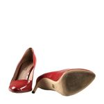 Scarpin da marca Hugo Boss, tamanho 39 sola, aproximadamente 38 BR, confeccionado em verniz vermelho. Conta com salto de 10,5 cm. Encontra-se em excelente estado, com marcas de uso na sola.