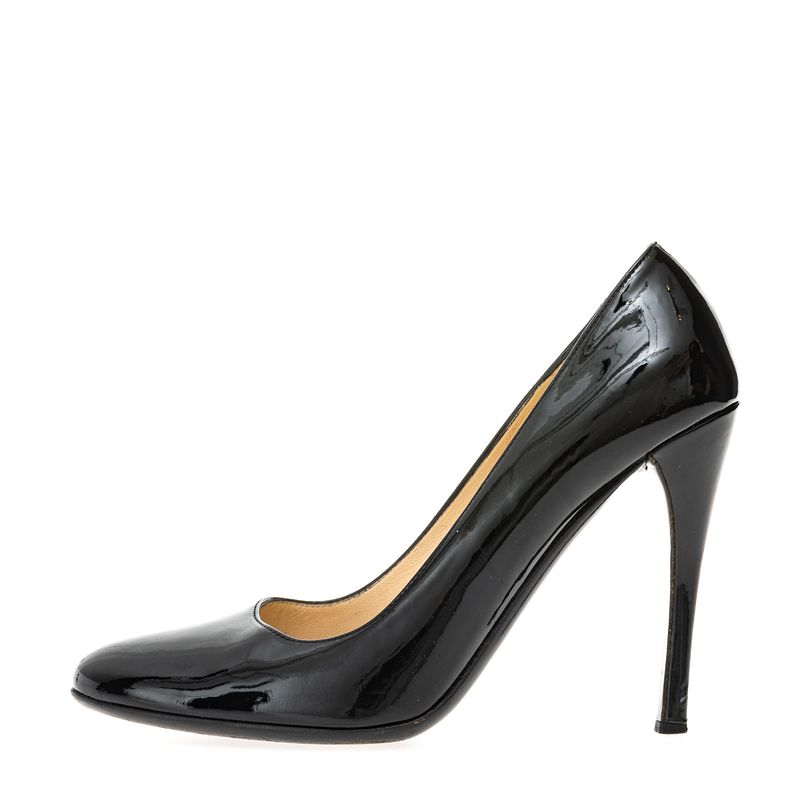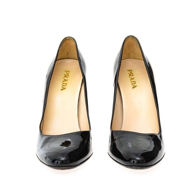 Scarpin da marca Prada. Confeccionado em verniz na cor preta. A peça se encontra em ótimo estado, com levíssimas marcas de uso.