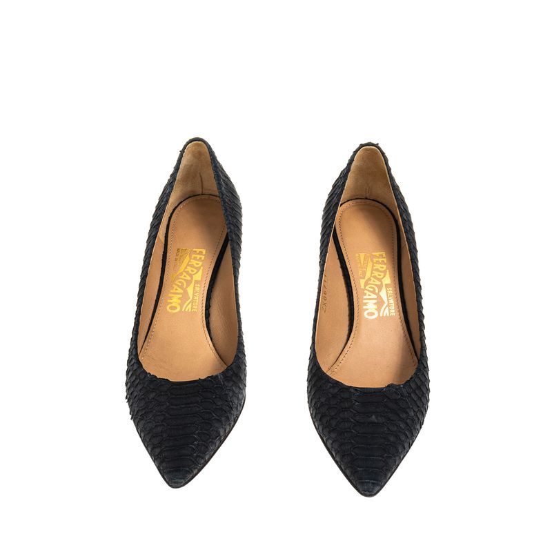 Scarpin Salvatore Ferragamo Couro Exótico Preto