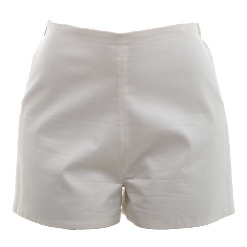 Short da marca Paula Raia. Confeccionado em algodão branco, possui elástico na parte traseira do cós e dois fechos por zíper laterais. A peça se encontra em excelente estado, muito bem conservada.