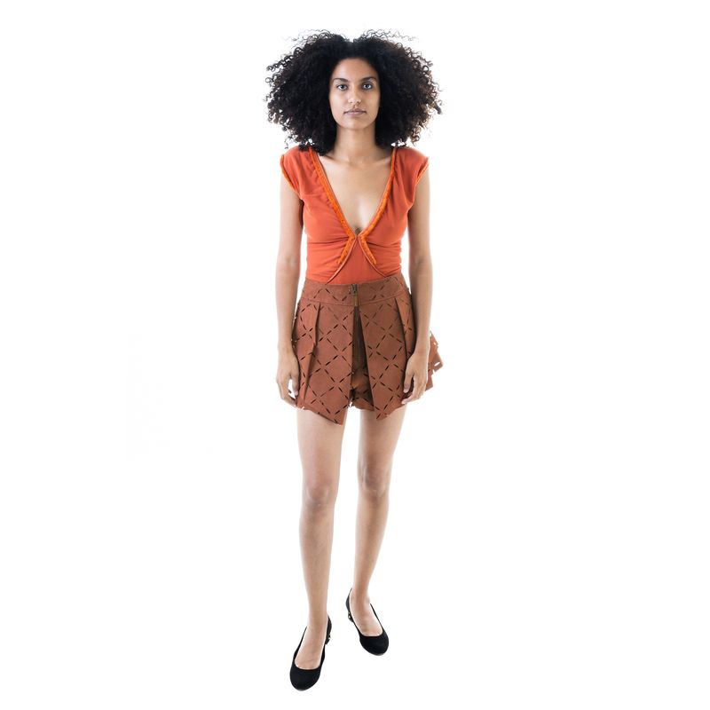 FemininoRoupasShortShort Saia Paula Raia Camurça Caramelo