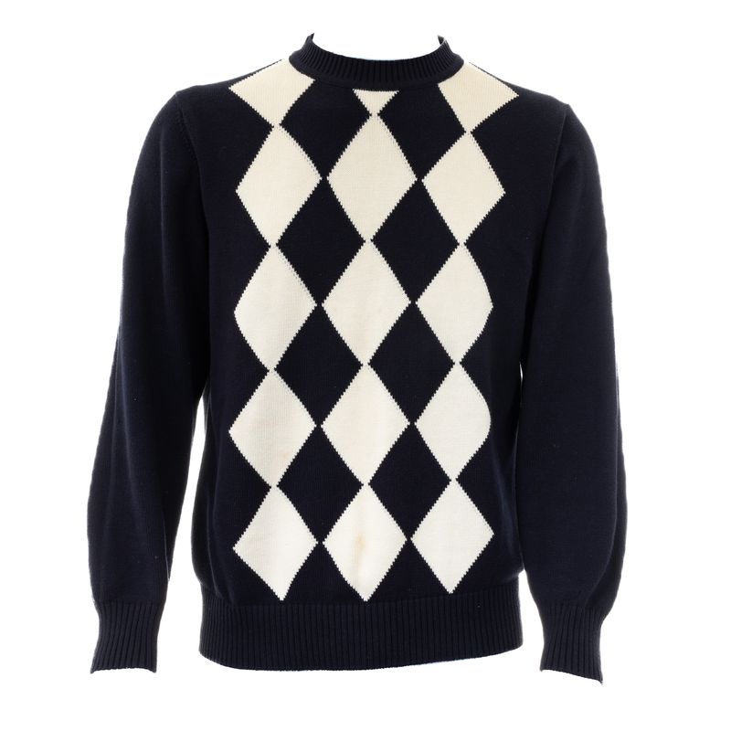 Suéter Christian Dior Algodão Losangos Marinho e Branco