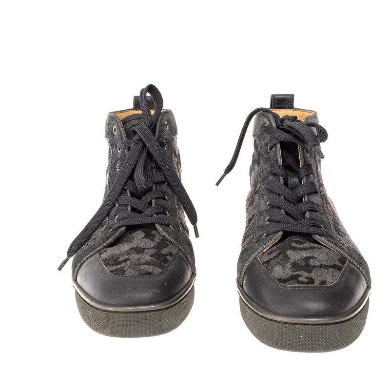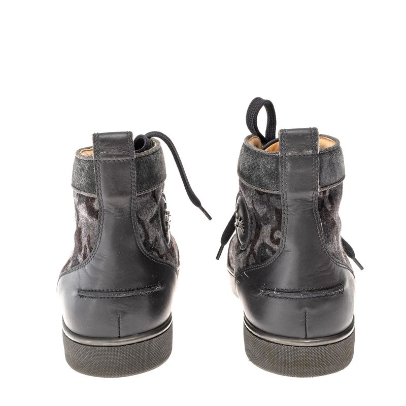 Tênis Christian Louboutin Couro e Tecido Cinza Estampado
