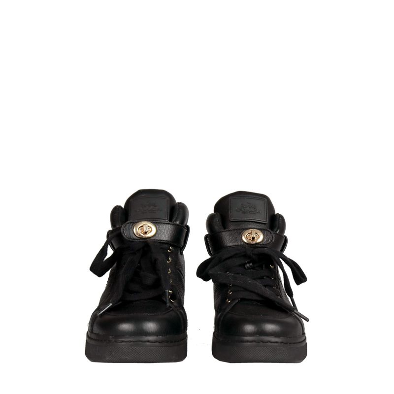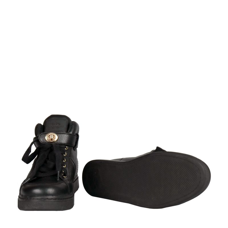 Tênis de cano médio da marca Coach, tamanho 37 1/2 sola, aproximadamente 35/36 BR, confeccionada em couro preto com sola emborrachada. Encontra-se em excelente estado de conservação, usado uma vez.