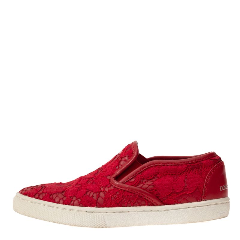 Tênis Dolce & Gabbana Slip On Renda Vermelho