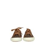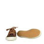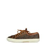 Tênis da marca Michael Kors, tamanho 7M sola, aproximadamente 35/36 BR, confeccionado em canvas com monograma da marca e acabamento em couro marrom. O modelo conta com sola emborrachada. Encontra-se em perfeito estado de conservação, nunca usado.