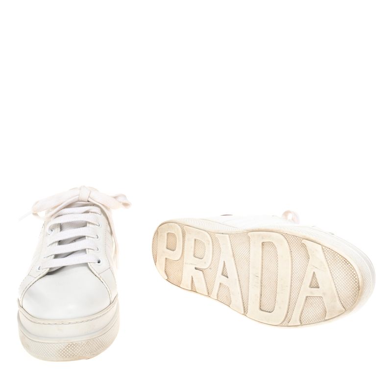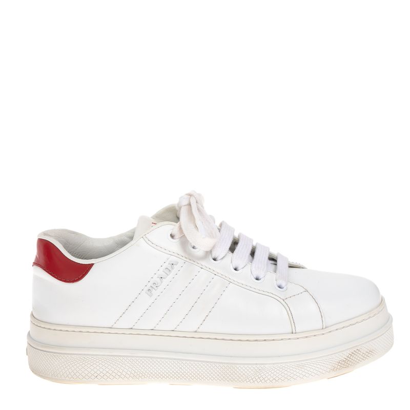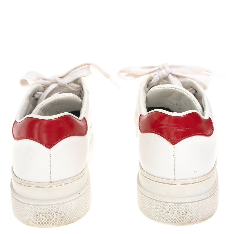 FemininoSapatosTênisSem SaltoTênis Prada Couro Branco e Vermelho