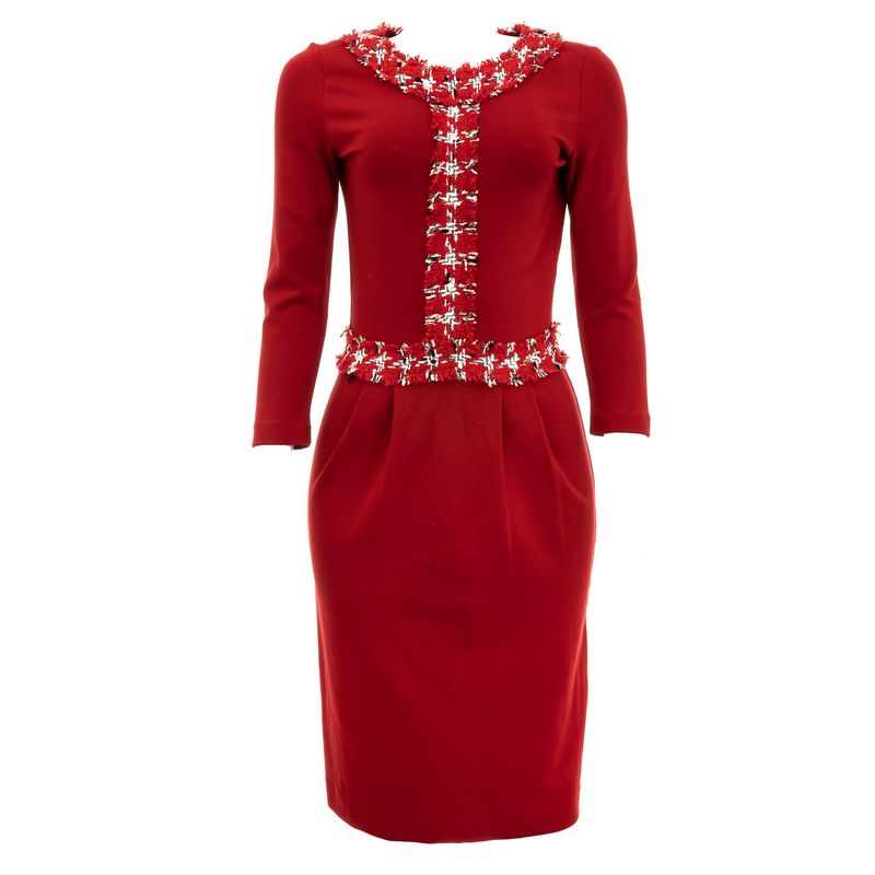 Vestido Carolina Herrera Vermelho Detalhe Tweed