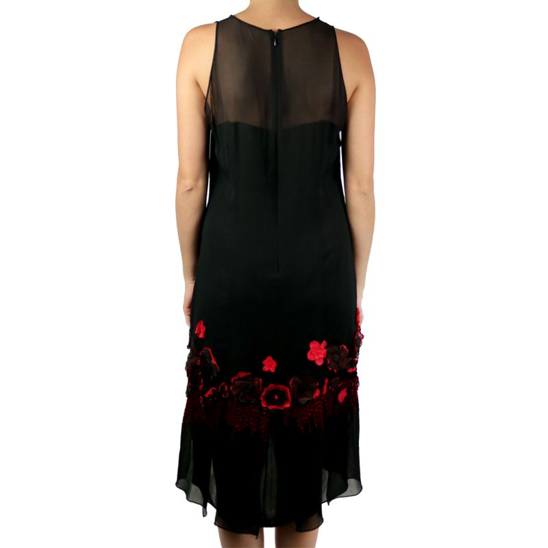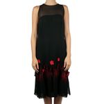 FemininoRoupasVestidosVestido Chanel Vintage em Crepe de Seda Preto com Flores Vermelhas