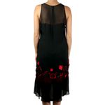 Vestido Chanel Vintage em Crepe de Seda Preto com Flores Vermelhas