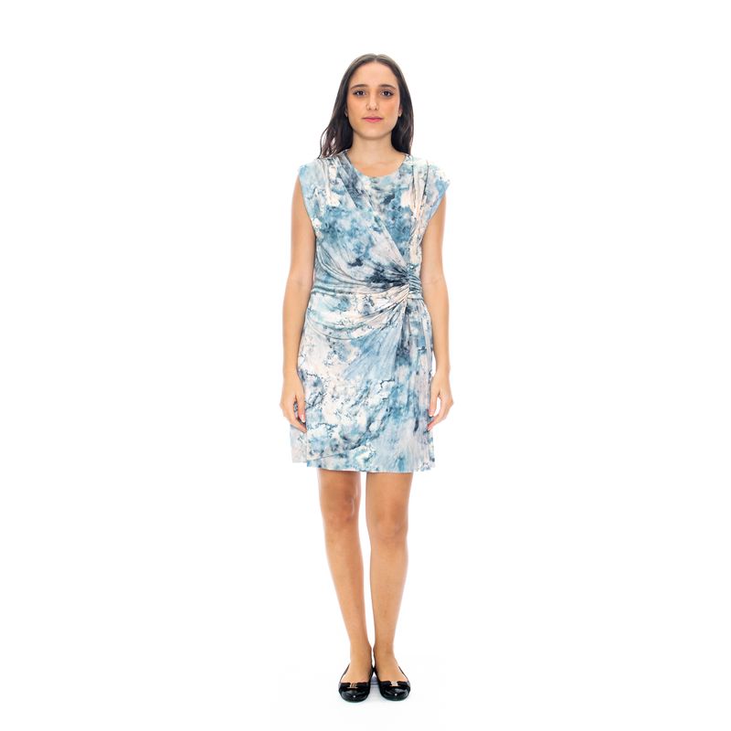 Vestido da marca Cris Barros, tamanho M. Confeccionado em tecido viscose tie dye na cor azul, detalhes drapeado. Encontra-se em ótimo estado de conservação.