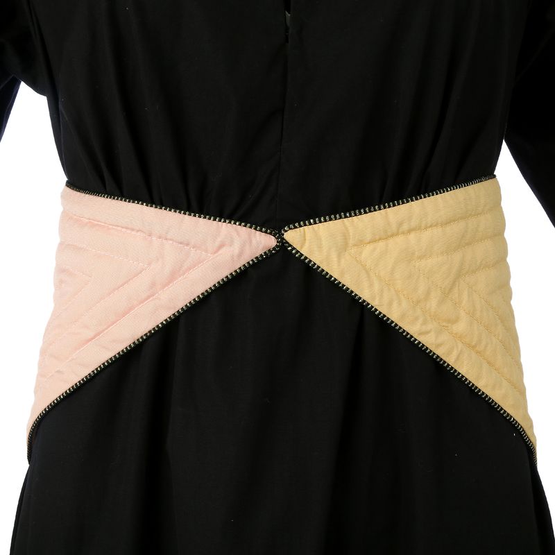 Vestido da marca Cris Barros. Confeccionado em algodão preto, possui comprimento midi e aplicação na cintura com amarração em rosa e amarelo. A peça se encontra em excelente estado, muito bem conservada.