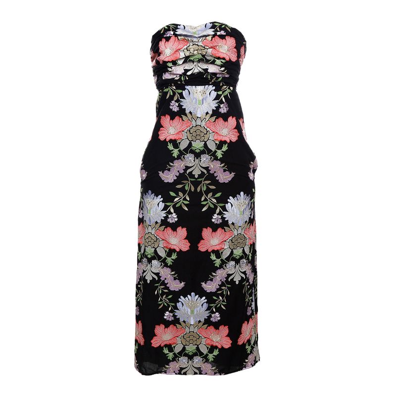 Vestido Cris Barros Roxana Floral com Fundo Preto