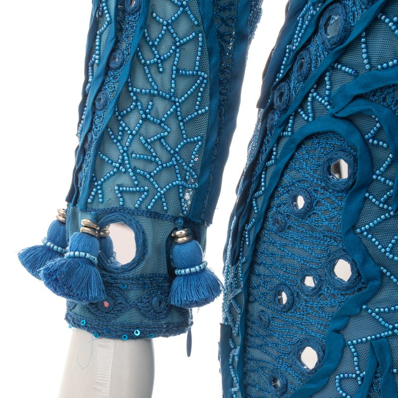 Vestido Emilio Pucci Manga Longa Aplicações Azul