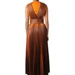 Vestido da marca Givenchy, tamanho 40, confeccionado em couro plissado marrom. O vestido é recortado e conta com um body laranja separado. Encontra-se em perfeito estado de conservação, nunca usado.