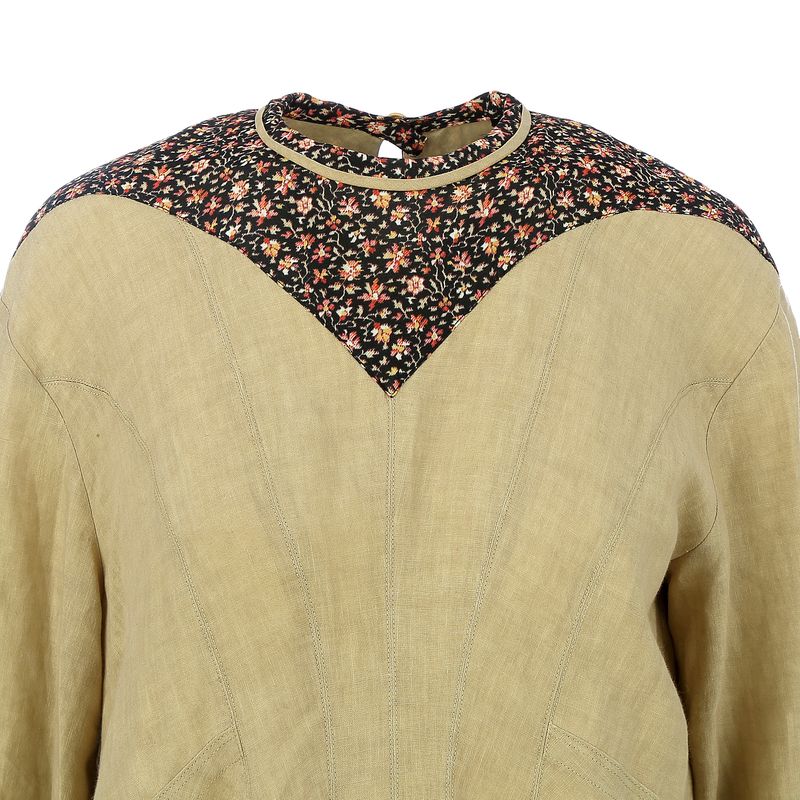 Vestido da marca Isabel Marant. Confeccionado em tecido na cor bege com estampa floral. O vestido possui comprimento curto, modelagem ampla, mangas compridas, botão atrás para fecho da gola. Não possui fecho. A peça se encontra em ótimo estado, com levíssimas marcas de uso.