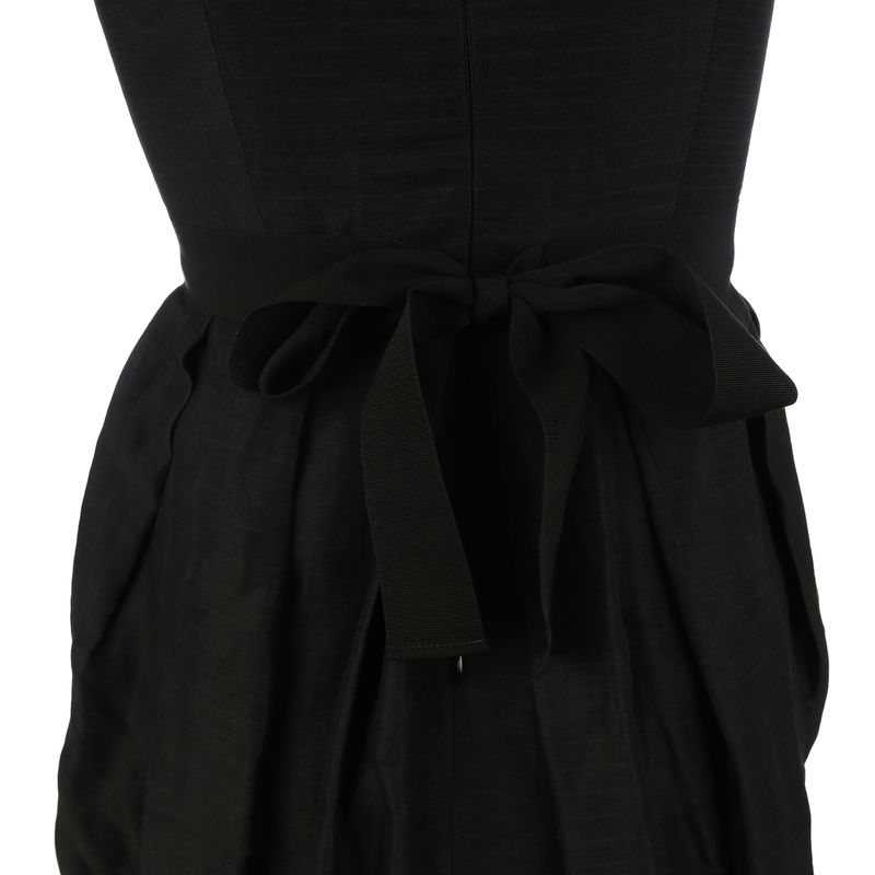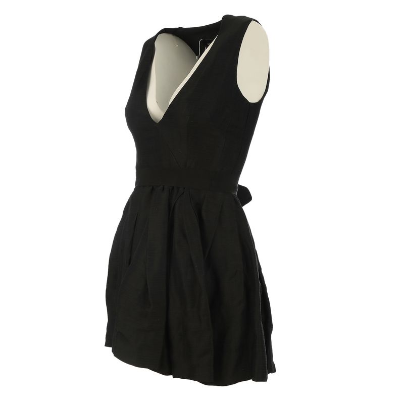Vestido da marca Isabel Marant. Confeccionado em linho preto, decote em V, faixa para amarração na cintura e fecho por meio de zíper invisível. A peça se encontra em estado satisfatório, com leves marcas de uso aparentes.