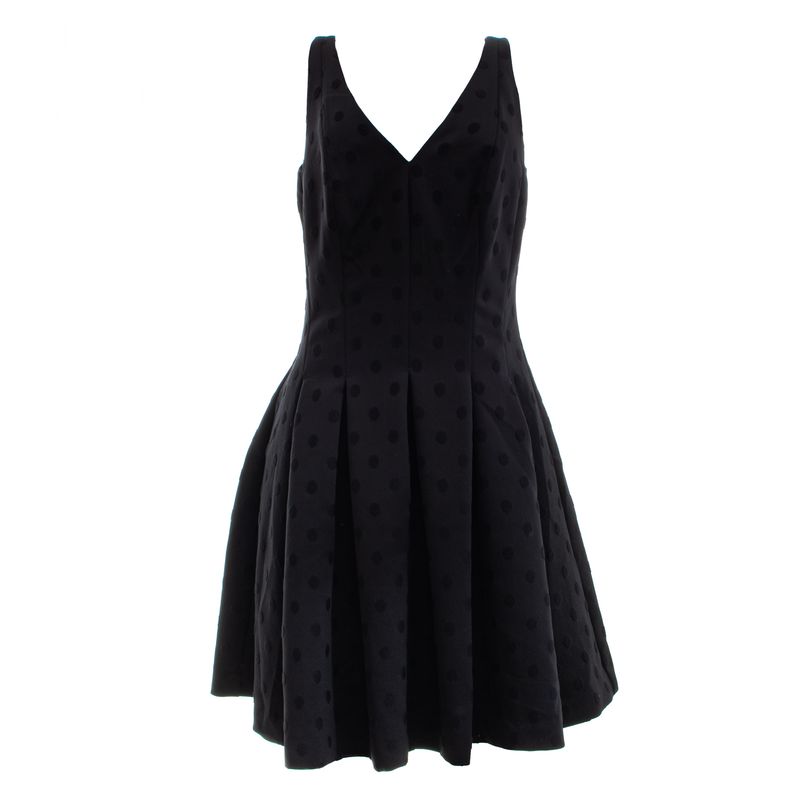 Vestido da marca Lauren Ralph Lauren. Confeccionado em poliéster com elastano na cor preta e estampa de poás. Modelo com saia rodada e fecho de zíper invisível nas costas. A peça se encontra em ótimo estado, com leves marcas de uso e marquinha na região das axilas.
