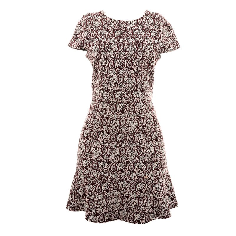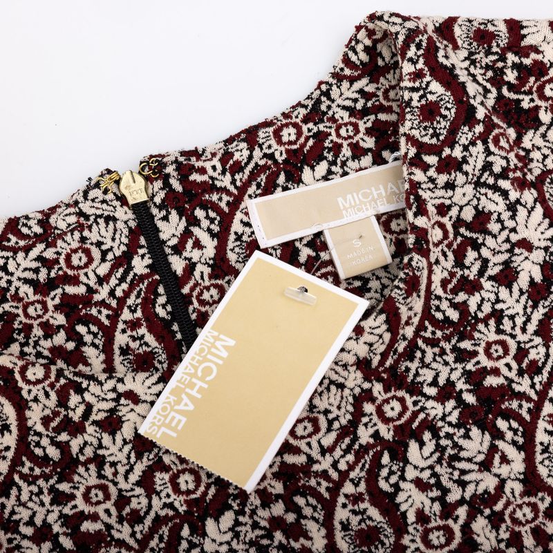 Vestido Michael Kors. Confeccionado em Jacquard bordô e branco. Possui mangas curtas, fecho por zíper traseiro invisível e acompanha etiqueta original da marca. Peça nova, mas com leve marca na parte da frente, conforme foto.