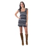 Vestido da marca Missoni, tamanho PP. Confeccionado em tricô com padronagem chevron, nos tons cinza, marrom e preto, modelo curto com alças grossas. A peça se encontra em estado satisfatório, com leves marcas de uso.