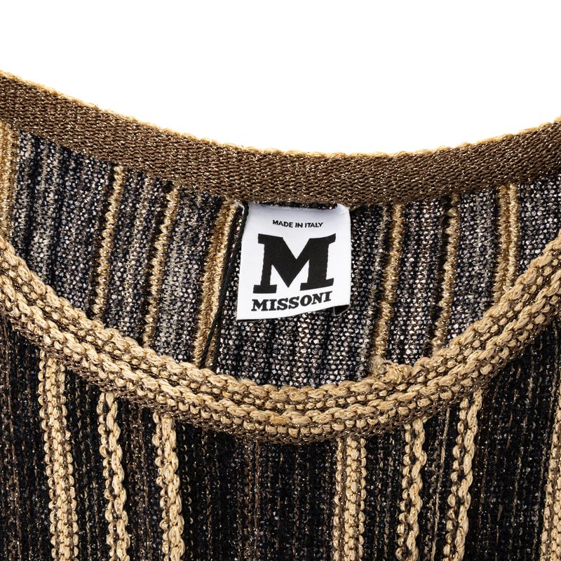 Vestido da marca Missoni. Confeccionado em tricô de poliamida, acetato e lã, nas cores preto e dourado. Modelo possui forro interno fixo na peça. A peça se encontra em ótimo estado, com levíssimas marcas de uso.