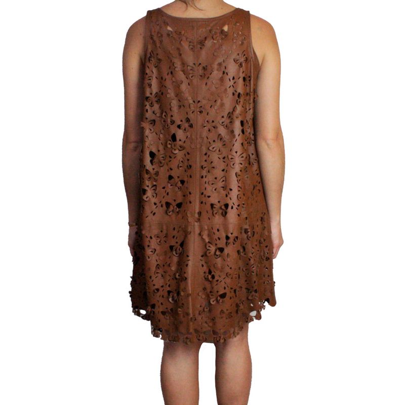 Vestido Patricia Motta Couro Caramelo Flores