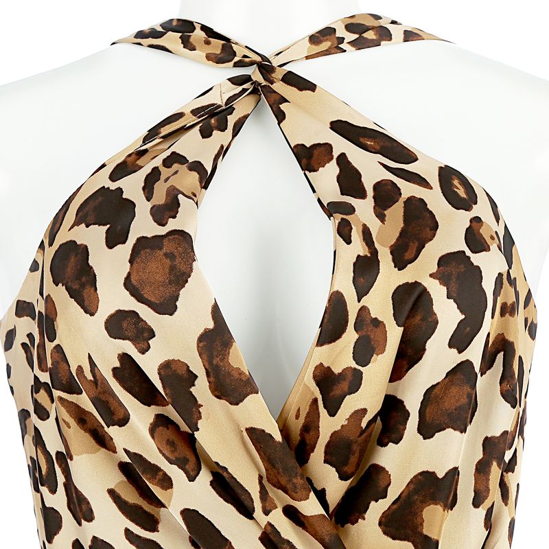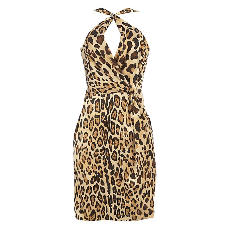 Vestido da marca Ralph Lauren. Confeccionado em tecido estampado em animal print com decote na parte da frente e fecho na parte de trás por meio de zíper invisível. A peça se encontra em estado satisfatório, com leves marcas de uso aparentes.