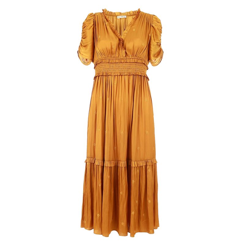 Vestido Ulla Johnson Midi Drapeado Mostardo