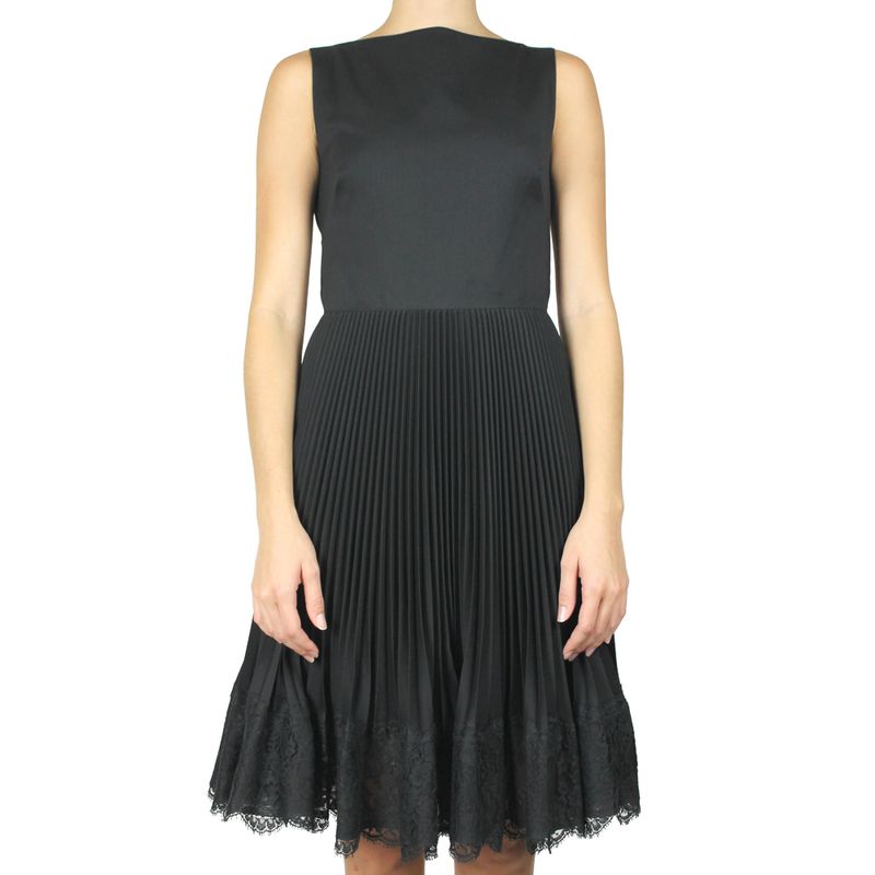 Vestido Valentino Plissado e Renda Preto