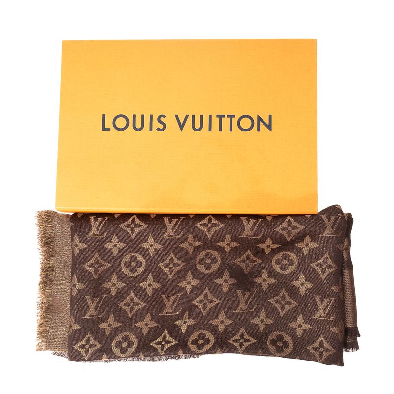 FemininoAcessórios de LuxoCachecóis e LençosXale Louis Vuitton Monogram Classic Marrom e Dourado